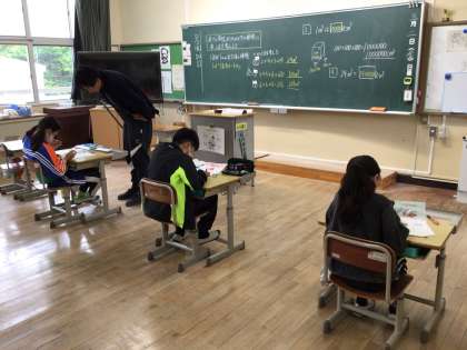 3・4年生は午後にドッヂボール大会を楽しんでいました。相手によって投げ方をやさしくするなどの気配りも見えました。高学年は算数。さすがに内容も難しくなってきます。6年生は、これまで使っていた○や△といった記号の代わりに、XやYを使い始めてたことで、一気に中学校の数学っぽい雰囲気になりました。