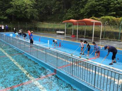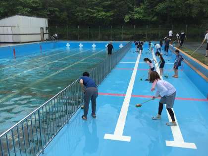 本日は授業参観およびプール清掃にたくさんの保護者の皆様にお越しいただきました。ありがとうございました。お子さんのがんばっている姿をご覧いただけたでしょうか。プールもきれいになりました。一旦乾燥させたのち、注水を始めます。6月9日にプール開きとなる予定です。