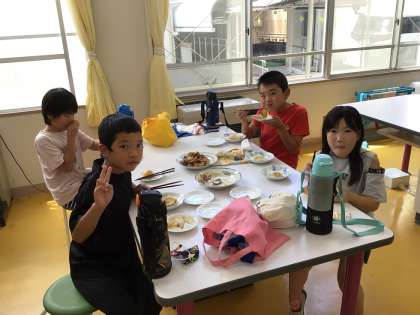 3・4年生が自分たちで育てた玉ねぎを調理して試食しました。「甘くておいしい」と、笑顔がこぼれていました。地産地消ならぬ自産自消ですね。