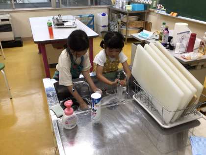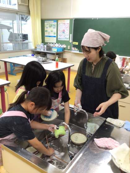 ごちそうさま 公開日 2025/07/08 更新日 2025/07/08 お知らせ 2年生が畑で育てたピーマンとズッキーニを使って調理実習をしました。ピーマンとベーコンの炒め物、ズッキーニの唐揚げの2品を作ったところで、校長室まで声をかけにきてくれました。2品とも本当においしくいただきました。ズッキーニの唐揚げは初めて食べたのですあ、家でも作りたくなりました。ごちそうさまでした。 食べ終わった後は、みんなできれいに片づけをしました。進んで仕事を見つけて動いてくれる姿に感心しました。