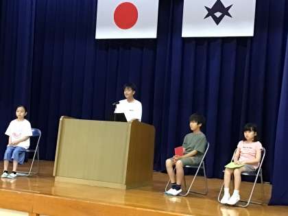3時間目に夏休み前集会を行いました。4名の代表児童が楽しかったことや楽しみにしていること、がんばったことなどを発表してくれました。