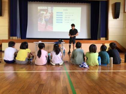 陸上短距離で元日本代表としてパラリンピック等の世界大会で活躍された佐藤圭太選手をお招きし、パラスポーツ交流授業として3・4年生が義足体験やボッチャの試合等を体験しました。
