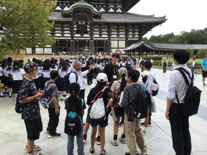 東大寺の見学が終わりました。全員が柱の穴を通りました。