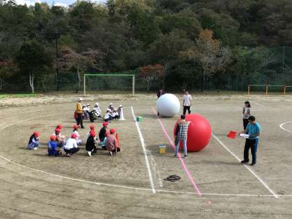 今日の種目は『大玉転がし』です。みんな上手にできていました。本番が楽しみです。