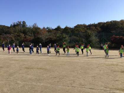 明日の運動会に向けて、最後のダンス練習です。みんな笑顔で頑張っています。