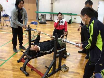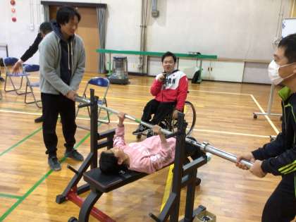 前半では加藤さんの取り組んでいるパワーリフティングを体験しました。