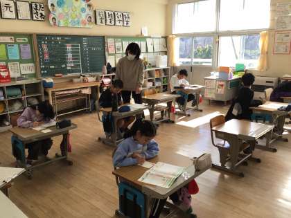 3・4年生はハガキの書き方を学んでいます。手紙を書く機会が少なくなったので、なかなか難しそうですが、大切な人に向けた年賀状を心を込めて書いています。