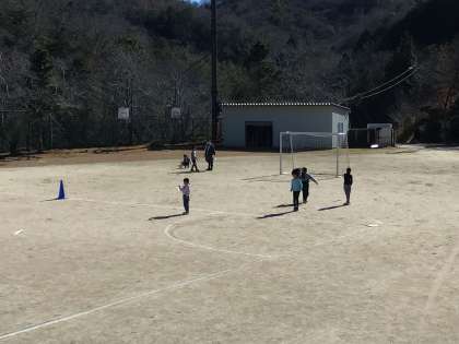 1・2年生は手作りのビニールロケット飛ばしを楽しんでいます。風に乗って遠くまで飛んでいました。