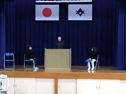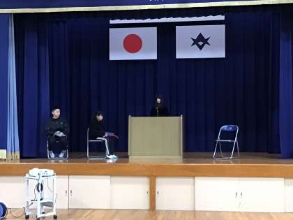 一時間目に集会を行いました。そこで3名の児童が意見発表を行い、これまで頑張ったことやこれからの目標などについて発表してくれました。
