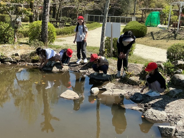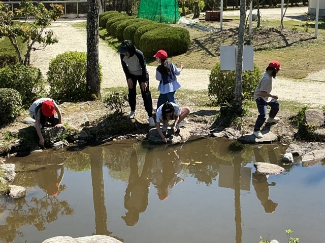 今日も元気に外遊び。サッカーチームとザリガニ釣りチームがあります。