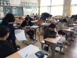 版画の授業に入りました。 下絵を描いています。 6年生は「修学旅行」、5年...