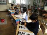 4年生の書写の授業の様子です。お手本をよく見ながら真剣に練習していました。