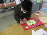 4年生の図工の授業の様子です。オリジナルのクリスマスカードが完成しました。この...