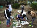 3年生が畑でネギの収穫をしていました。これですべての野菜を収穫できたようです。...