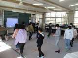 5・6年生の音楽では、ピアノのリズムに合わせて歩き方を変えるという授業をしてい...