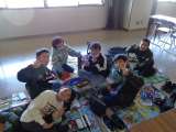 お楽しみのお弁当の時間です。子どもたちは笑顔でとても楽しそうに食事していました...