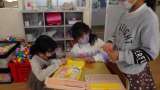 今後予定されている会の会場装飾に使うために、2年生が色紙で花飾りを作っていまし...