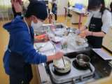 調理実習の続きです。卵を片手で割る子がいるなど、シェフのような手際の良さで調理...