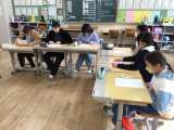 2年生と5年生が英語で楽しみました。 黒板に貼ってある英単語を読みながら前に...