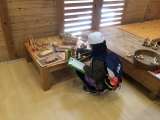 体験して、作品をもらいました。 竹とんぼは飛ばして遊びました。 機織りの作...