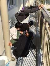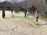 平均台の上でじゃんけんをしています。 なぜか男の子たちがすぐに落ちてしまいま...