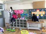 教室掃除からテラスの掃除までしていました。 そして、6年生の教室の掲示に着手...