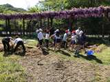 理科室前の畑に移動しました。 かなり草が生え、土も硬くなっていて大変でした。...