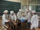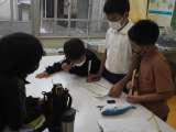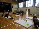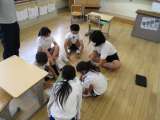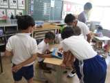 縦割り班ごとに、校内の教室や特別教室でミッションに挑戦しました。写真は、「マジ...