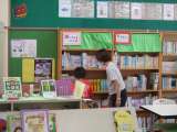 1年生が図書室で読書をしていました。お気に入りの本を探し、見つかると真剣に読ん...