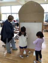 1年生が一生懸命に何かを作っていました。秘密基地かなと思ったのですが、実際は国...