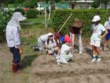 3・4年生が学年の畑に大豆の種を植えました。大豆は結構育てるのが難しい(という...