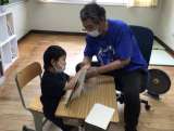 今日はK先生との最後の授業です。 みんなでよく飛ぶ紙飛行機の折り方を教えて...
