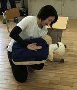 1年生の教室で、実際に子どもが食べ物を喉に詰まらせたという状況で、応急手当てを...