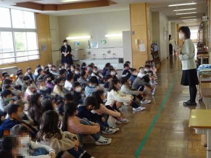始業の会の続きです。写真は、2年生、3年生の様子です。