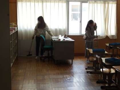 2〜6年生では掃除が始まっています。1年生は3時間で下校なので、6年生が1年生の教室にきて、誰もいなくなった教室を掃除してくれています。これからも、お手伝いにきてくれます。とても頼りになる6年生です。