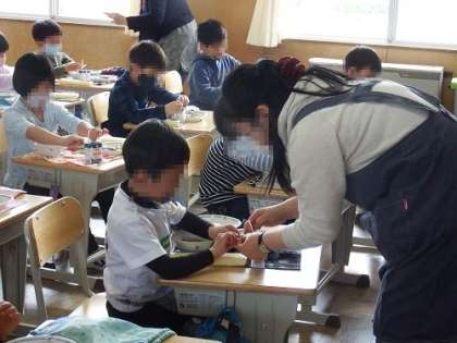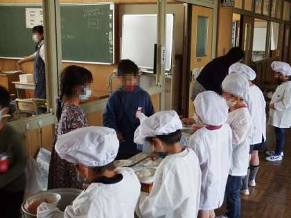 今日から1年生の給食が始まりました。小学校に入ってからの初めての給食。給食当番の仕方から手の洗い方、給食の片付け方など一つ一つ確認をしながら進めました。今日は、どのクラスも予想以上にスムーズに準備ができたようです。子どもたちの元気の源。しっかり食べてくださいね。写真は、1年1組の様子です。