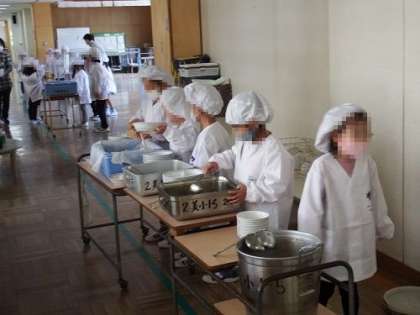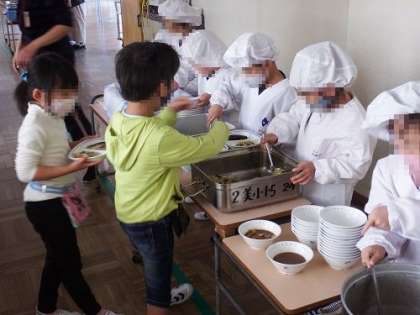 1年生給食スタートの続きです。写真は、1年5組の様子です。