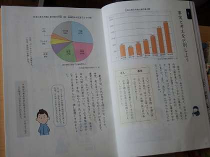 写真は、5年生の国語の授業の様子です。今日は、「事実と考えを区別しよう」の学習を進めました。グラフから読み取れる事実とその事実から考えられることを区別するという内容です。今日は、「日本に来た外国人旅行者の内訳」のグラフをもとに考えました。