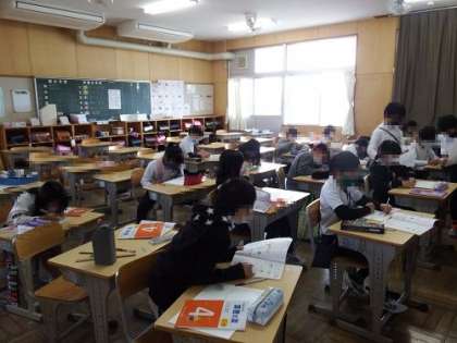 本年度4年生は、学級の人数が多いため、算数の授業を少人数で実施しています。子どもたちにとっても、教師との距離が近く指示も聞き取りやすいです。個別の指導を受ける時間も確保しやすくなっています。ぜひ、力をつけてほしいです。