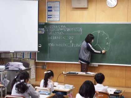 2年生の算数で「時こくと時間」について学びました。子どもたちにとって時間の概念を理解するのは、なかなか難しいです。具体的なもの(今日は時計の模型)を使いながら、体験的に学びを深めていきました。
