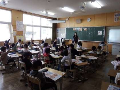 入学して間もない1年生。学校生活の楽しさを感じられるように、道徳で「がっこうのたのしいこと」を学習しました。本の中の絵に出てくる学校の楽しいことを参考に話し合うと、たくさんの意見が発表されました。これから、楽しいことがいっぱい待っているからね。