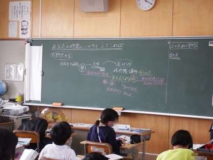 4年生の道徳で、100歳になっての医療現場で活躍し続けた野原重明医師を題材に授業を行いました。「人のために生きる」とは、どういうことなのか。命が続く限り現場に立ち続けた日野原医師の生涯について話し合い、考えを深めました。