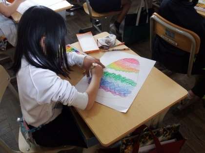 2年生の図工で「ふしぎなたまご」の学習に取り組みました。世界に一つしかない自分だけのたまご。どんな割れ方をして、そこから何が飛び出すのか、想像を広げて描いていきます。子どもたちの発想はとても豊かです。