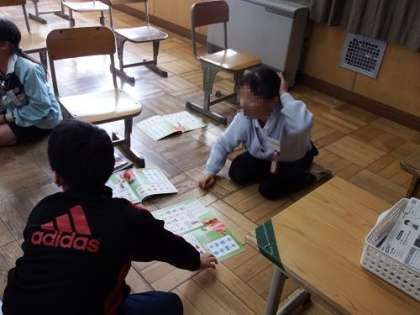 5年生で「好きな色を伝え合えるようになろう」という課題で外国語の学習を行いました。「What do you like?」子どもたちは基本の話型を使いながら、ゲーム形式で楽しく取り組んでいました。自分の好きな色を友達に伝えられるようになったかな?
