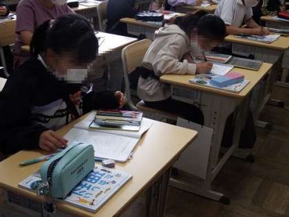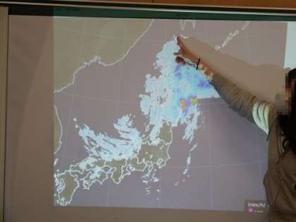 5年生の理科の授業で天気と気候を学習を行っています。この日は、雨雲の変化を調べ、天気がどのように変わっていくかを考えました。今は、雨雲レーダーなどの資料も天気予報などでよく目にします。ノートに作図しながら、みんなで話し合いました。