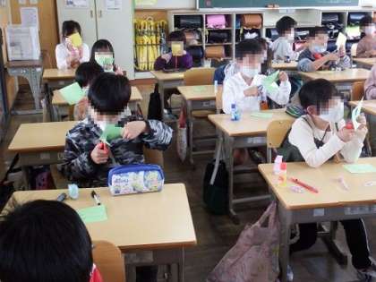 昨日紹介した1年生へのプレゼントになるメダルを作成しました。1年生のために、慎重に紙を切ろうとしている姿が、とてもかわいらしかったです。プレゼントを渡した時に、1年生の子が喜んでくれることが楽しみですね。写真は、2年1組と2組の様子です。