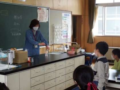 6年生の理科の授業です。酸素の働きを考える際に、教師が実験を行いました。「酸素のたくさん入ったビンに燃えたスチールウールを入れるとどうなるか」子どもたちは、実験に興味深々。中には立ち上がる子も。