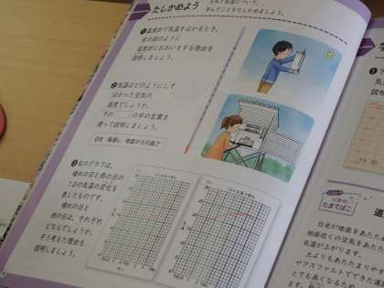 4年生の理科「天気と気温」についてのまとめを行いました。気温の測定方法を振り返り確認したり、1日の気温変化のグラフを見て、その日の天気を予想したりしました。