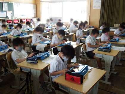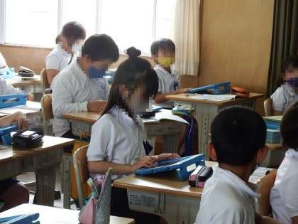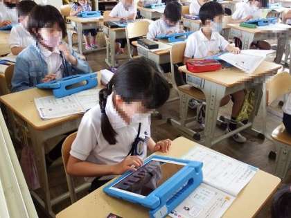 3年生の音楽の授業で、「海風きって」の曲を使って、せんりつづくりをしました。タブレットを使って途中までみんなで演奏したあと、自分がつくったせんりつを弾きます。自分がつくったせんりつを披露したい子もたくさんおり、堂々と発表できました。
