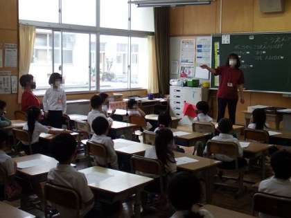 1年生が生活科「みんなのこうえん」で深田公園に出かけました。学校へもどってきてから、公園で見た物、あった物を話し合いました。今日は、残念ながら雨模様でしたが、それでも子どもたちは本当にたくさんのことを見つけてきた、教室での話し合いでは、たくさんの意見が発表されました。